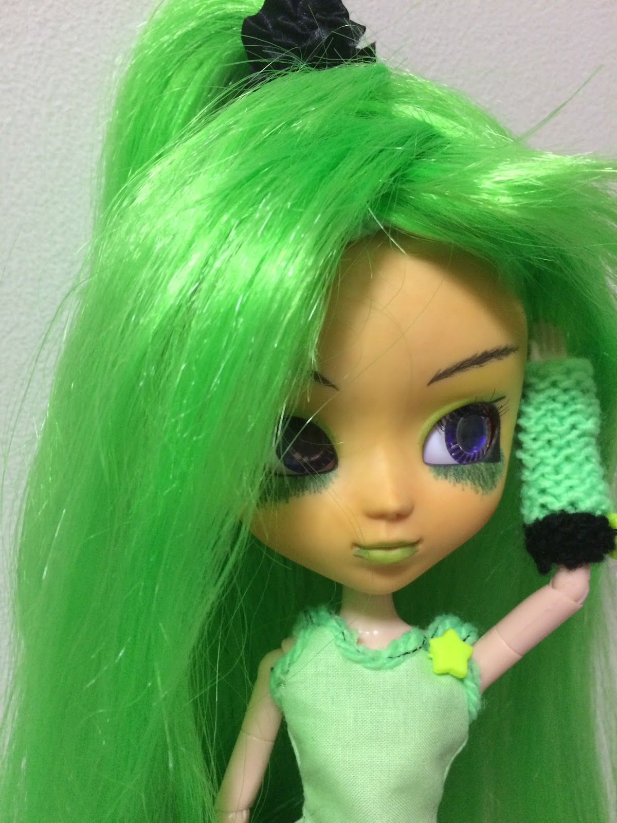 I used nylon fibers to make the wig and that was the first time. It was actually a human size wig which I unsewed and resewed for pullip size. I managed to put fiber every where in the process, even after hovering the entire room, I still find some from time to time.